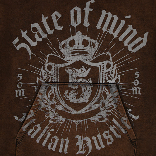 "ITALIAN HUSTLER" by Guè Hustler Kingdom Hoodie Rust