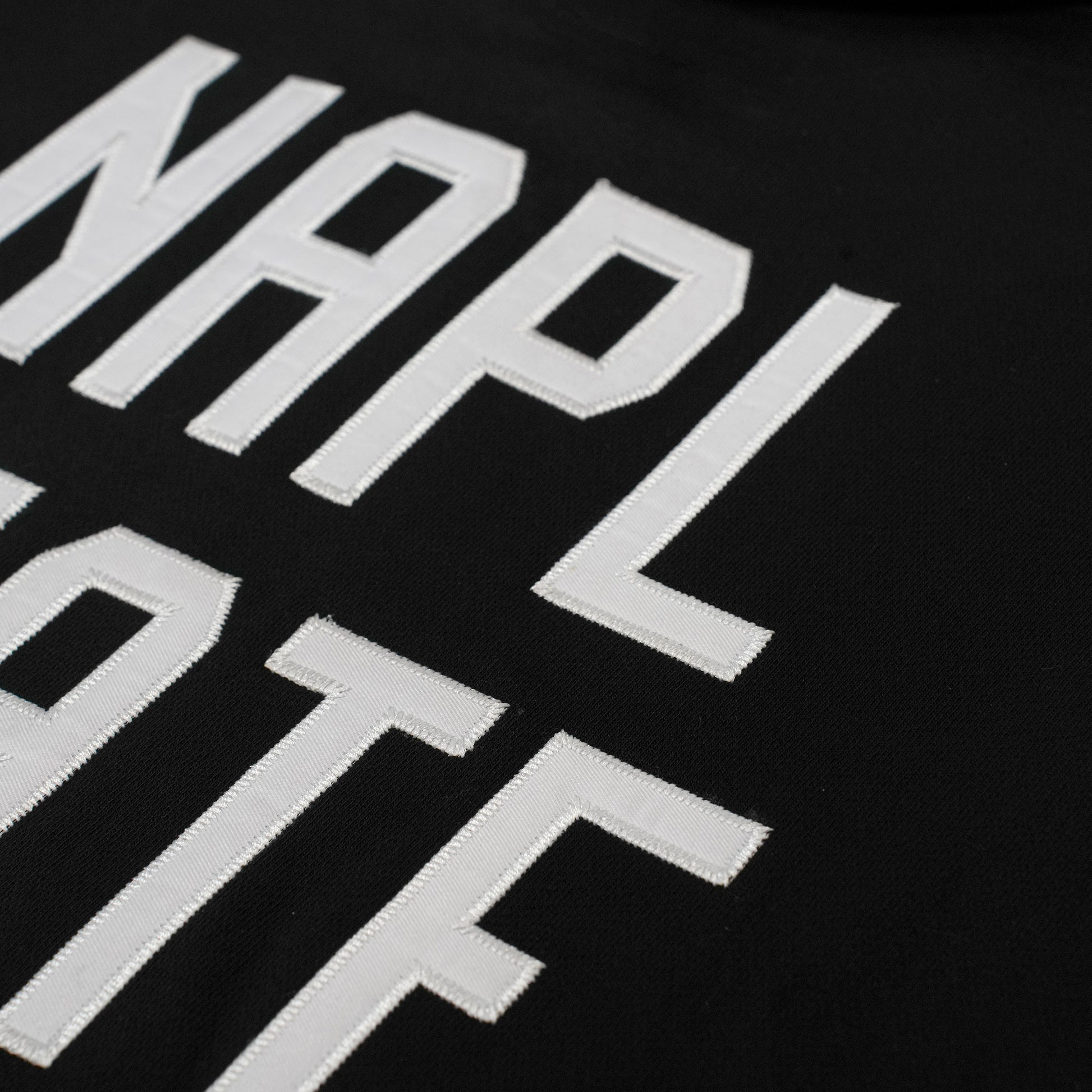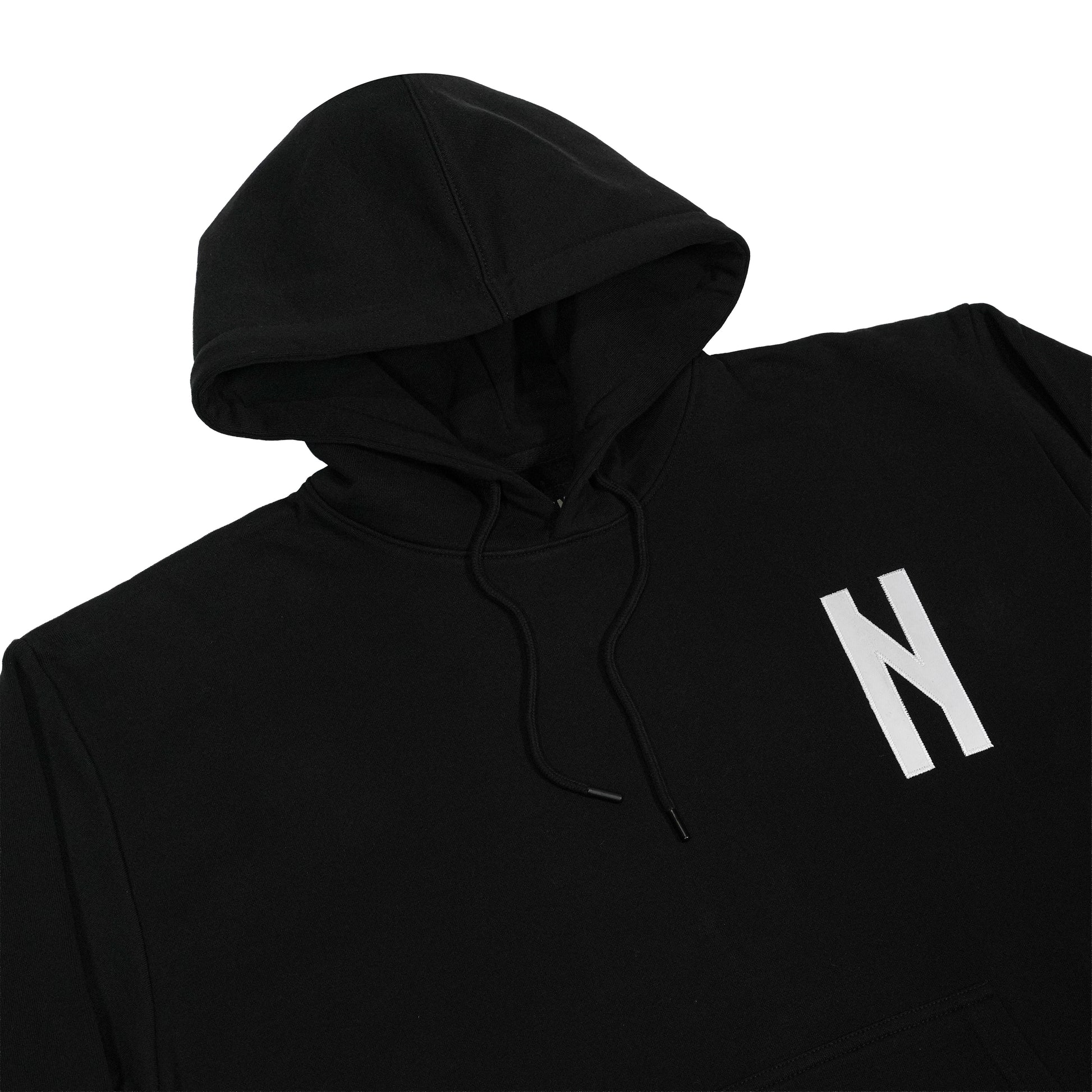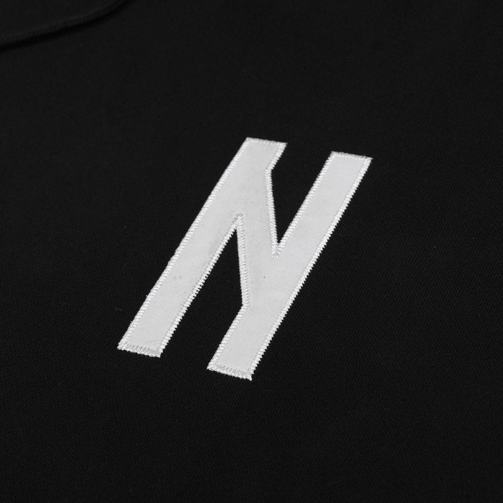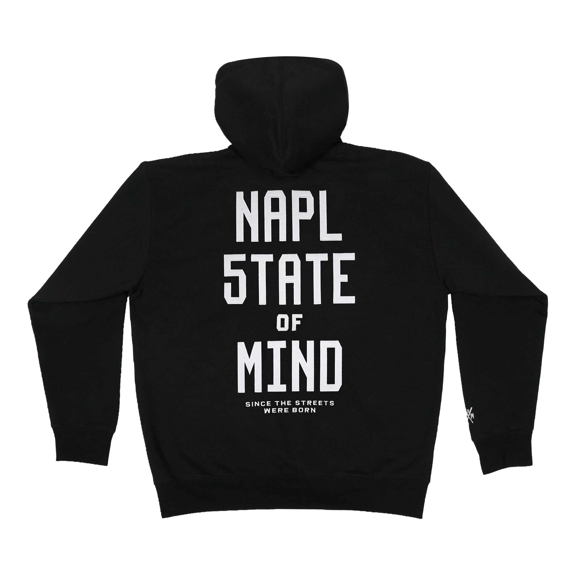 "NAPL 5TATE OF MIND" Felpa cappuccio nera, 80% cotone 20% poliestere 380g, applicazione tackle twill fronte/retro, vestibilità REGOLARE.