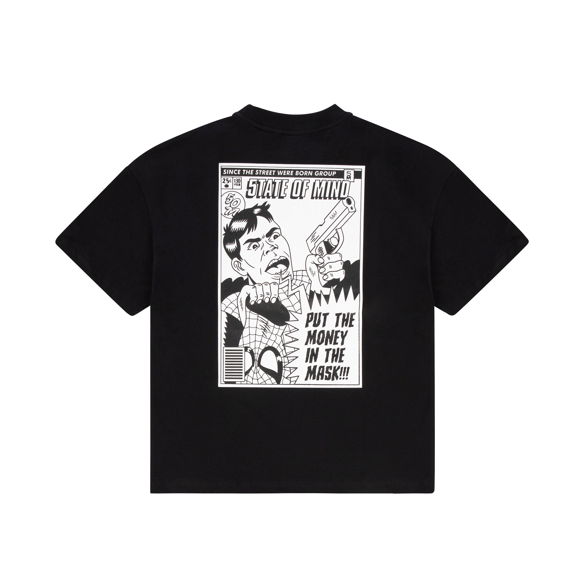 "5OM COMICS" T-Shirt Black, 100% cotone 220g, stampa fronte/retro, vestibilità Loose.