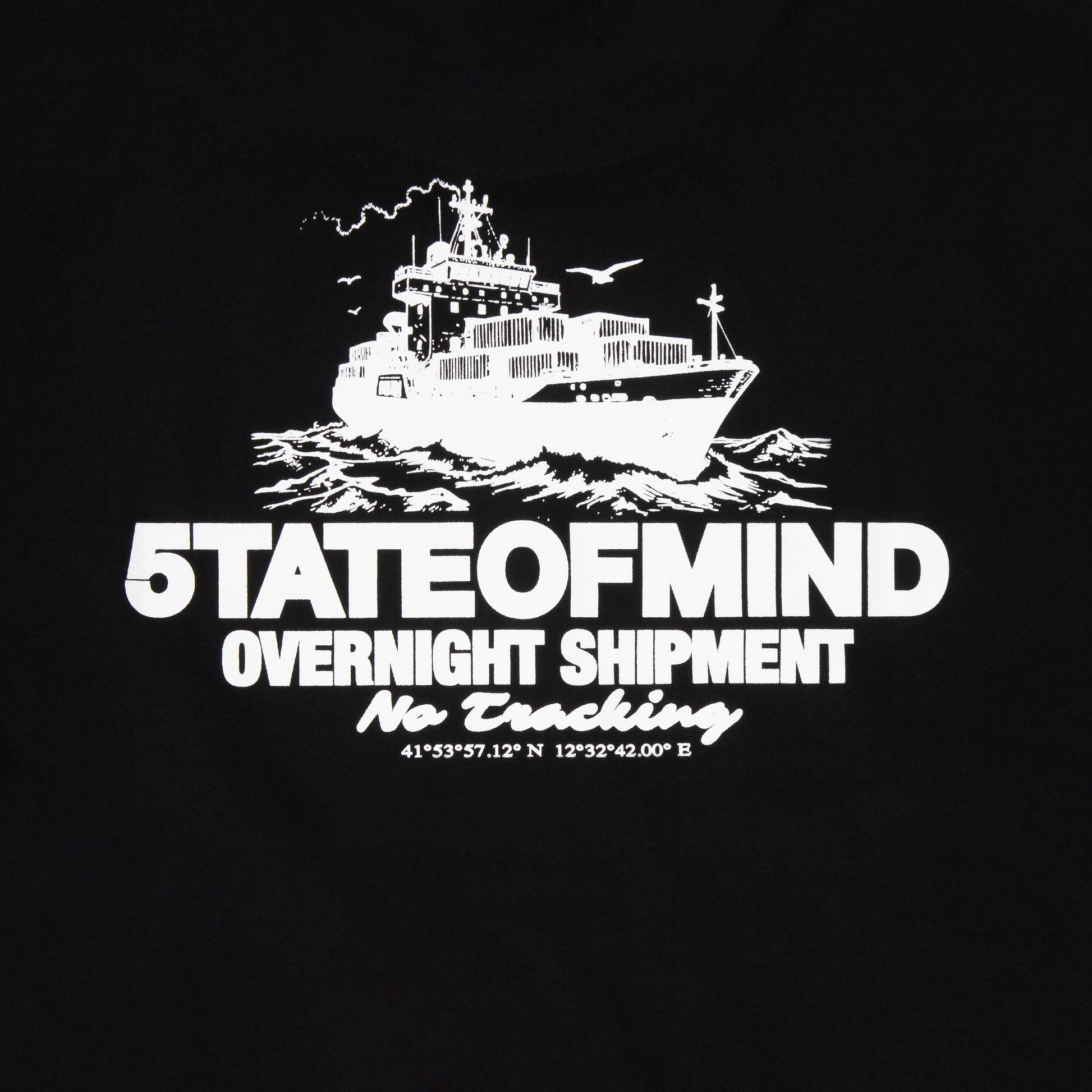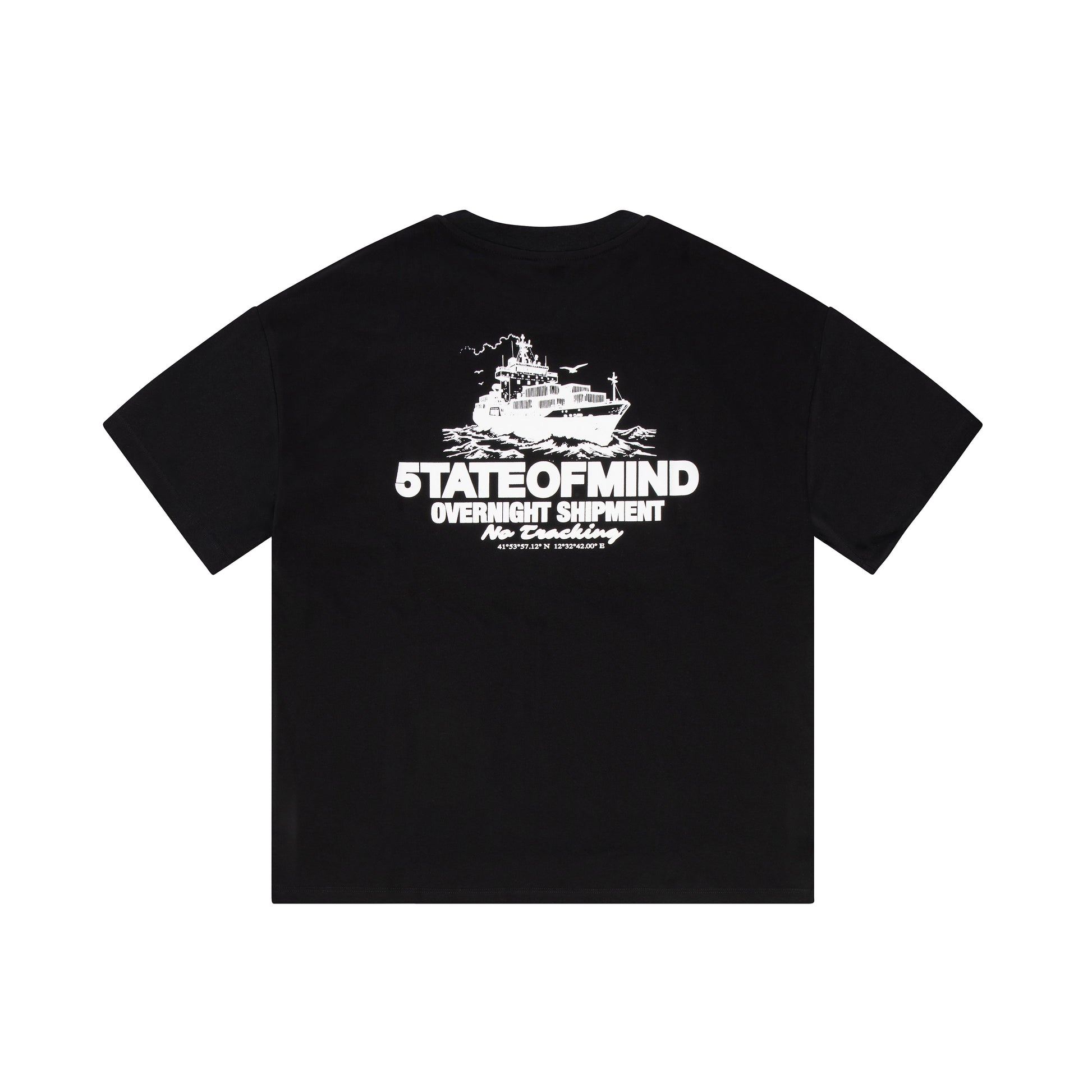 "50M SHIPMENT" T-Shirt Black, 100% cotone 220g, stampa fronte/retro, vestibilità Loose.