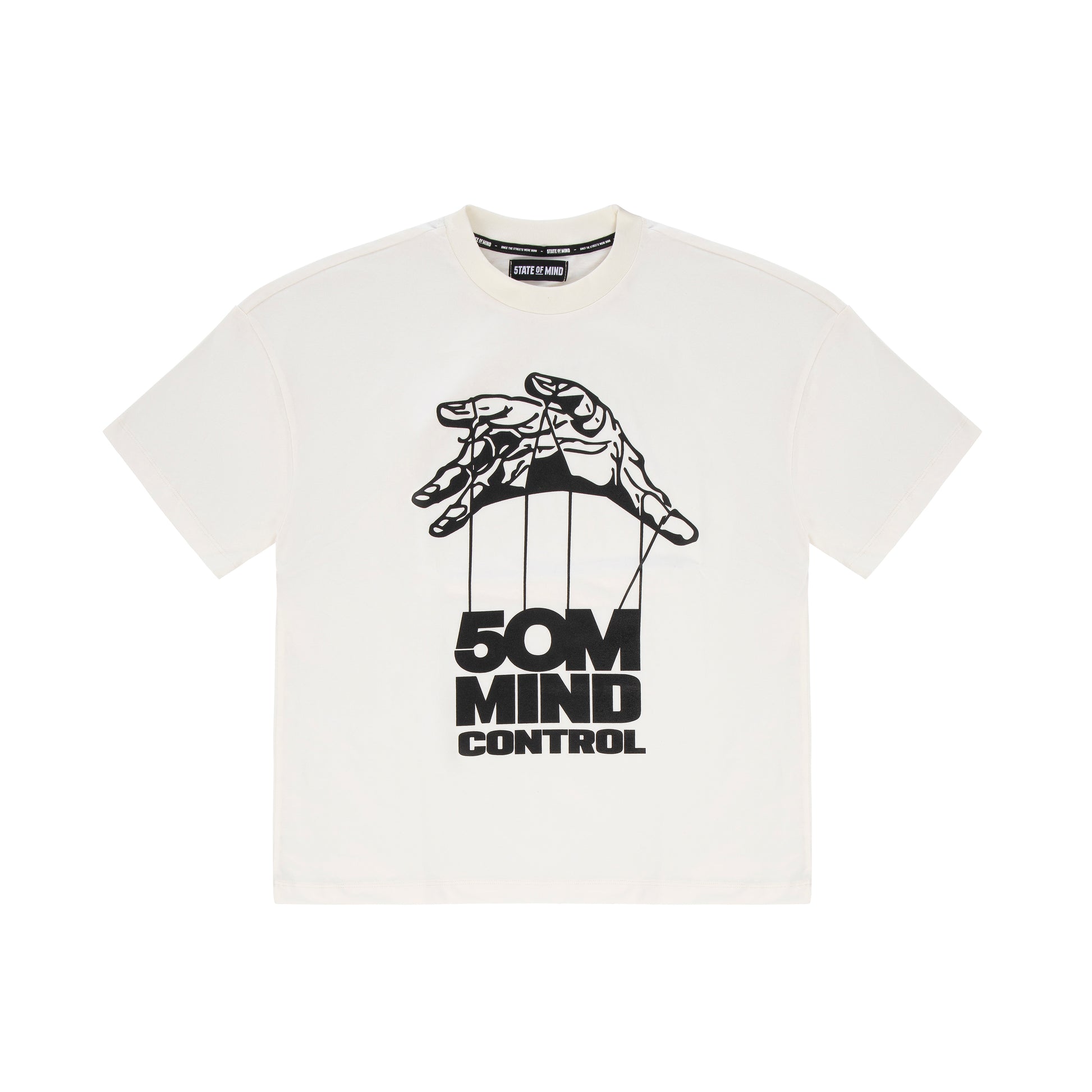 "MIND CONTROL" T-Shirt White, 100% cotone 220g, stampa fronte, vestibilità Loose.