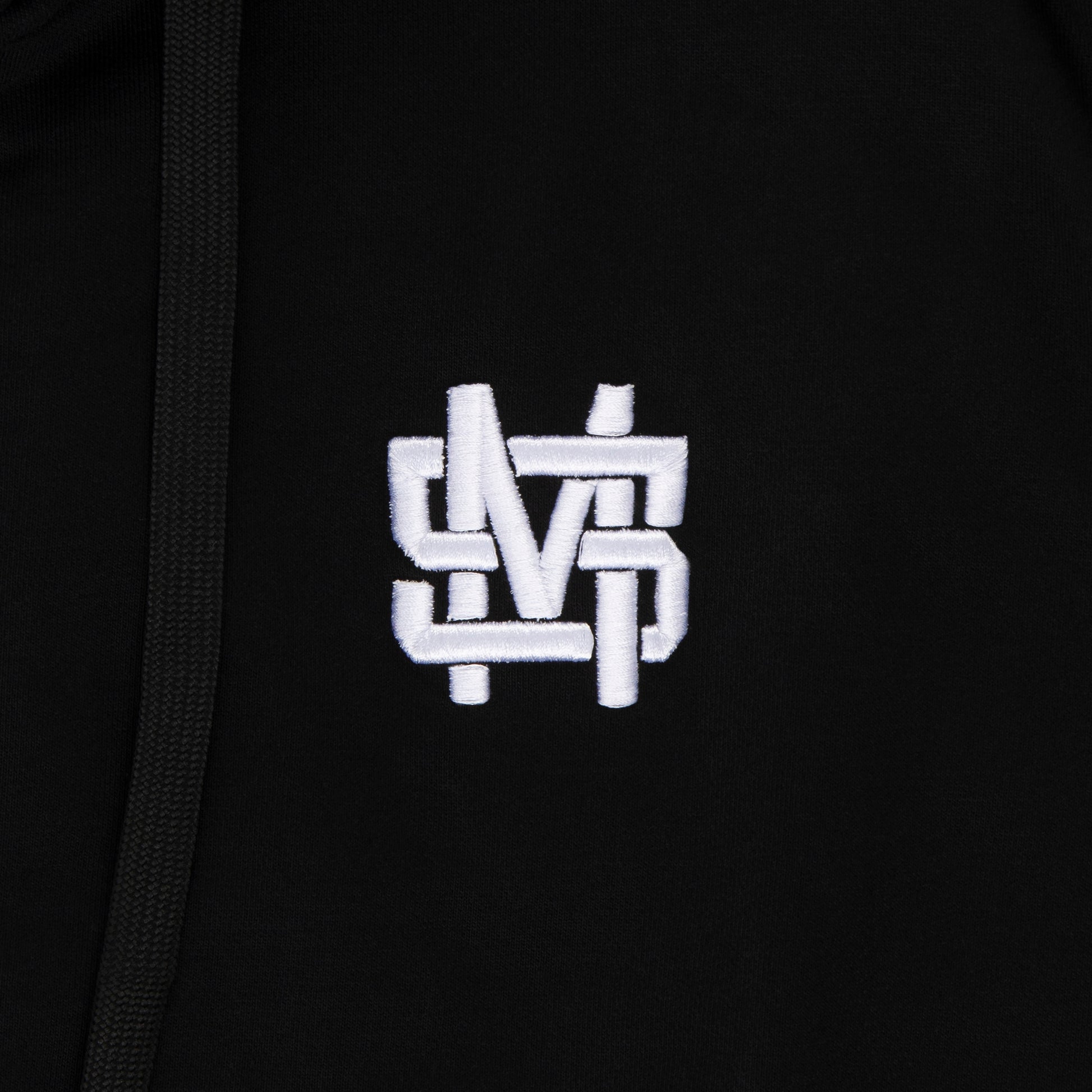 "MONOGRAM" Felpa cappuccio zip nera, 100% cotone 380g, ricamo sul petto, 2 tasche laterali, vestibilitĂ REGOLARE.