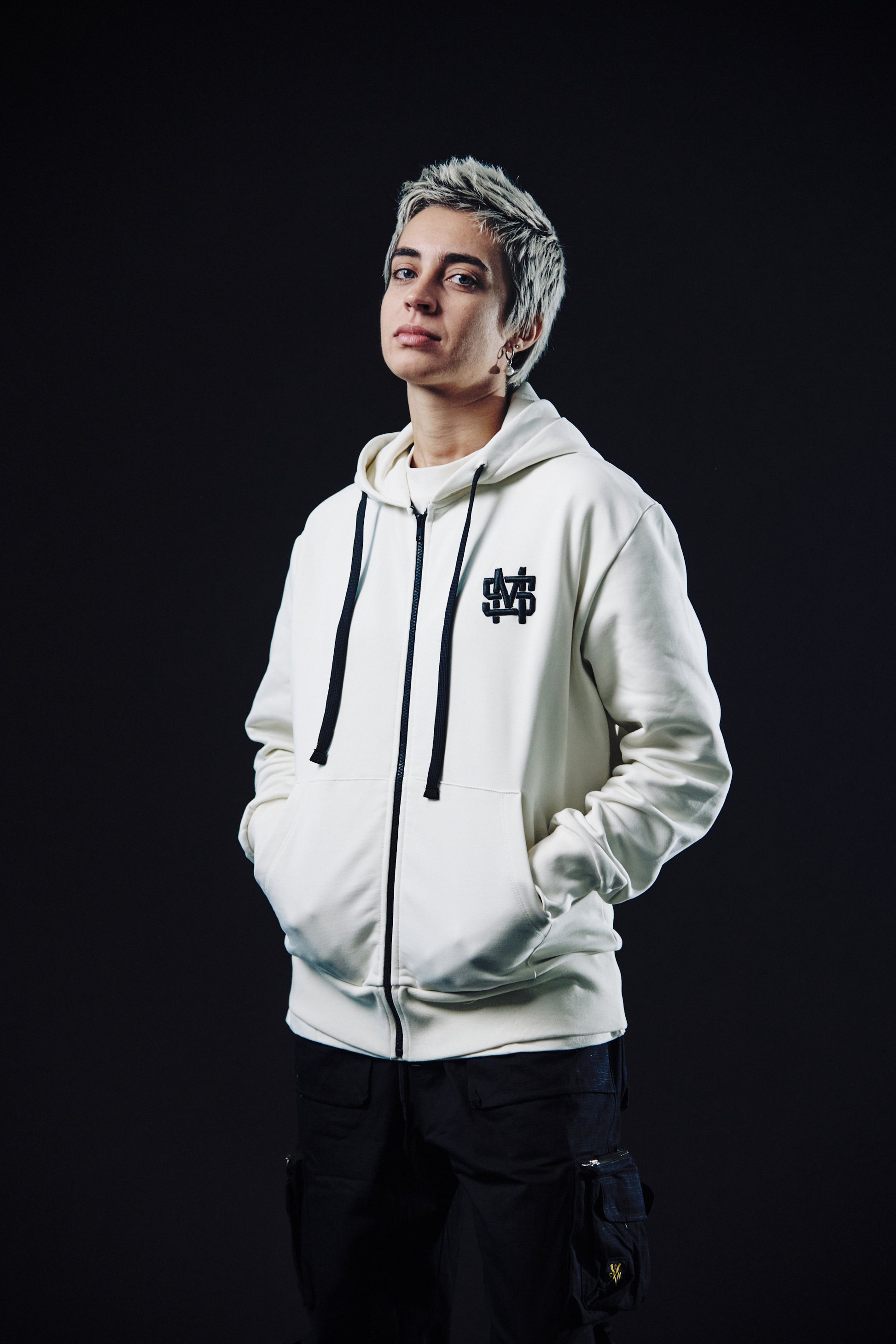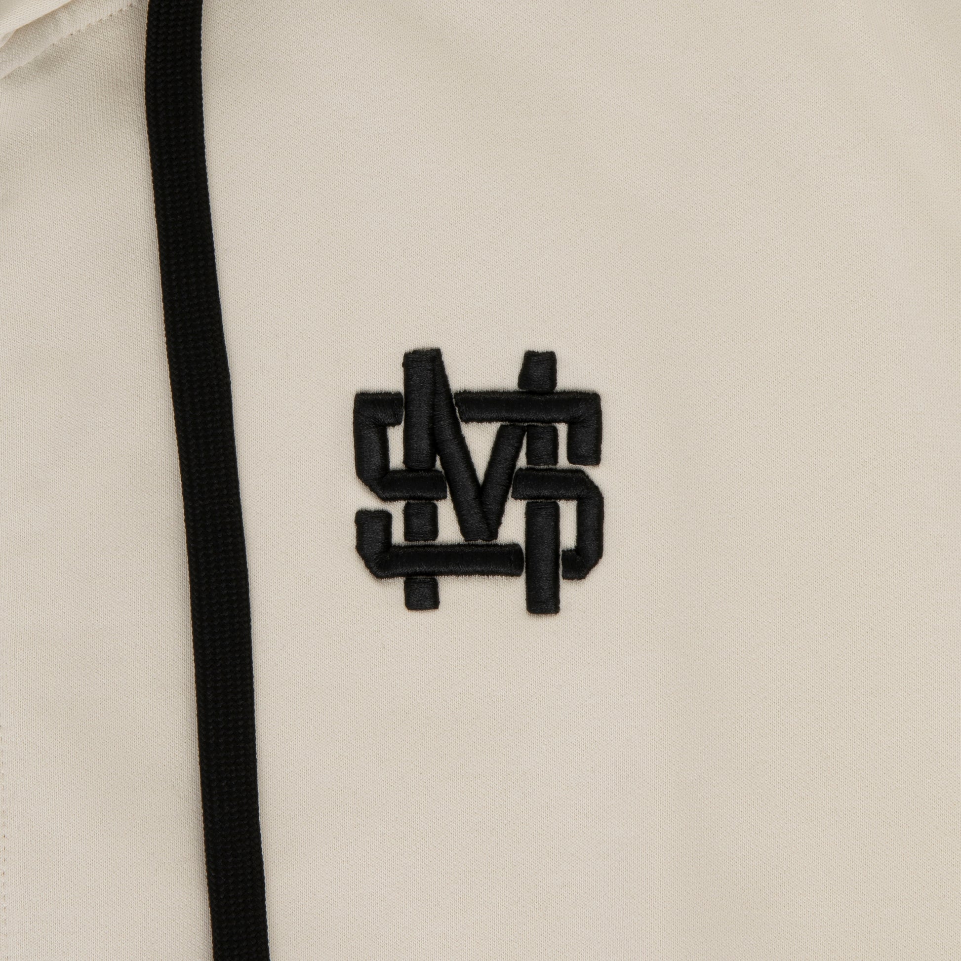"MONOGRAM" Felpa cappuccio bianca, 100% cotone 380g, ricamo sul petto, 2 tasche laterali, vestibilitĂ REGOLARE.