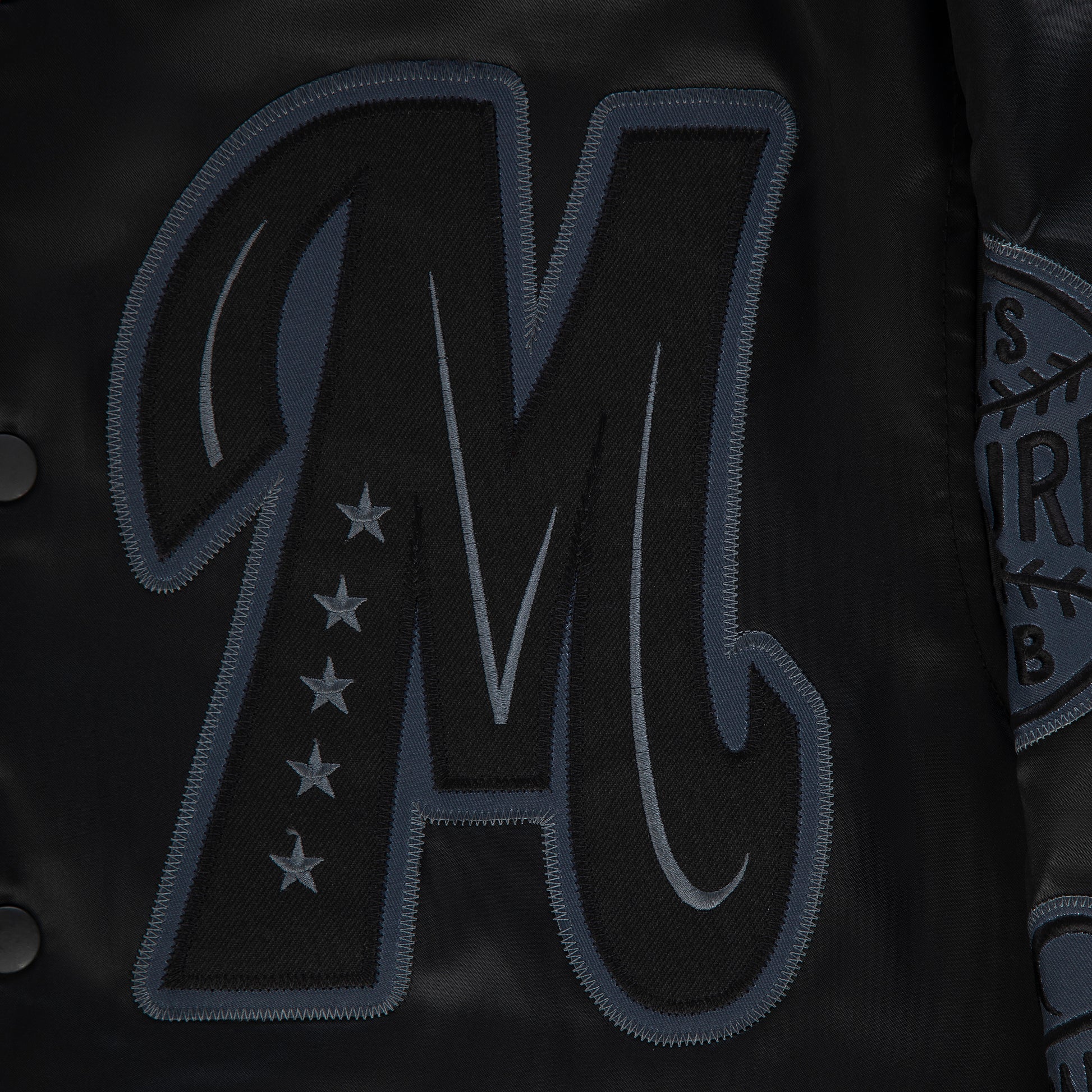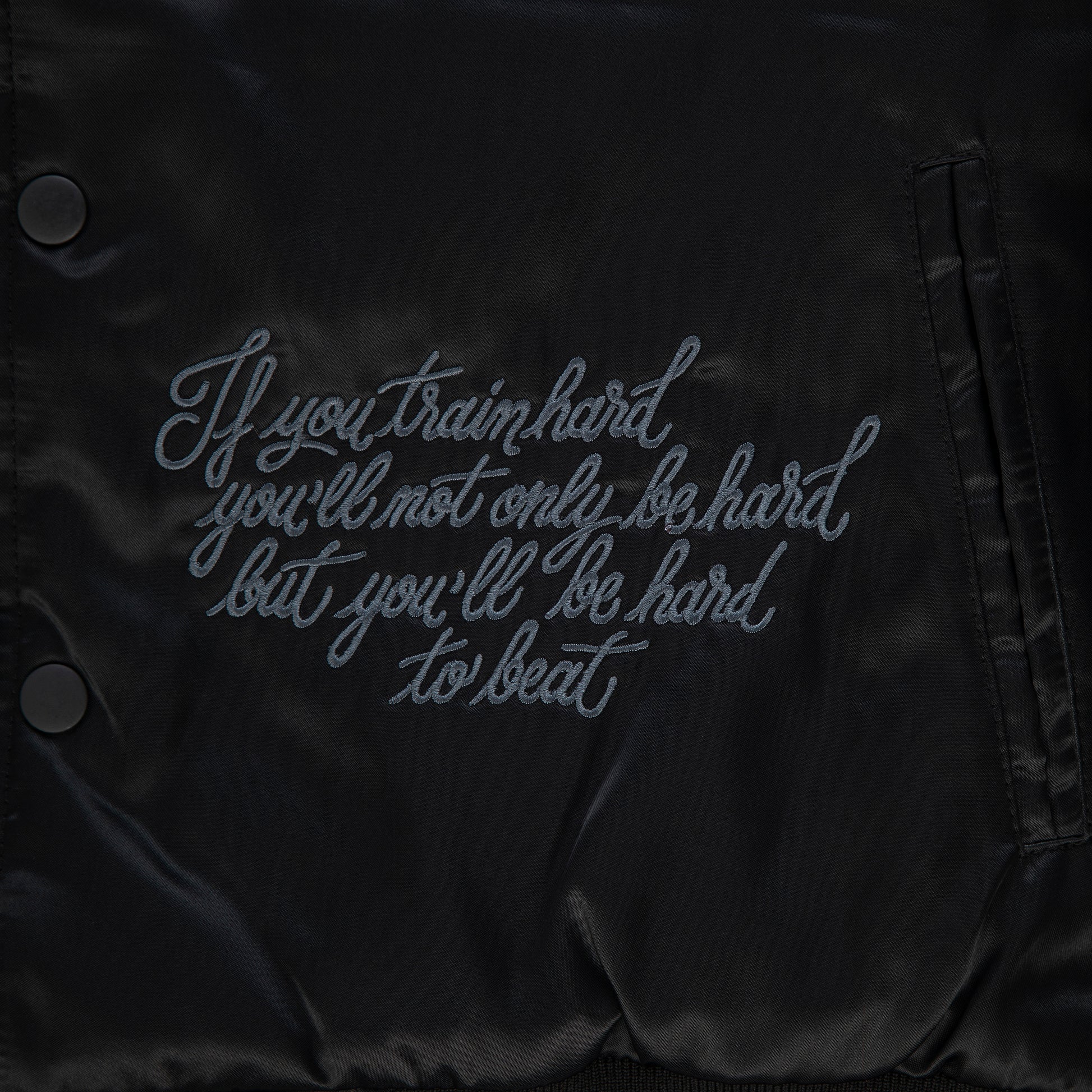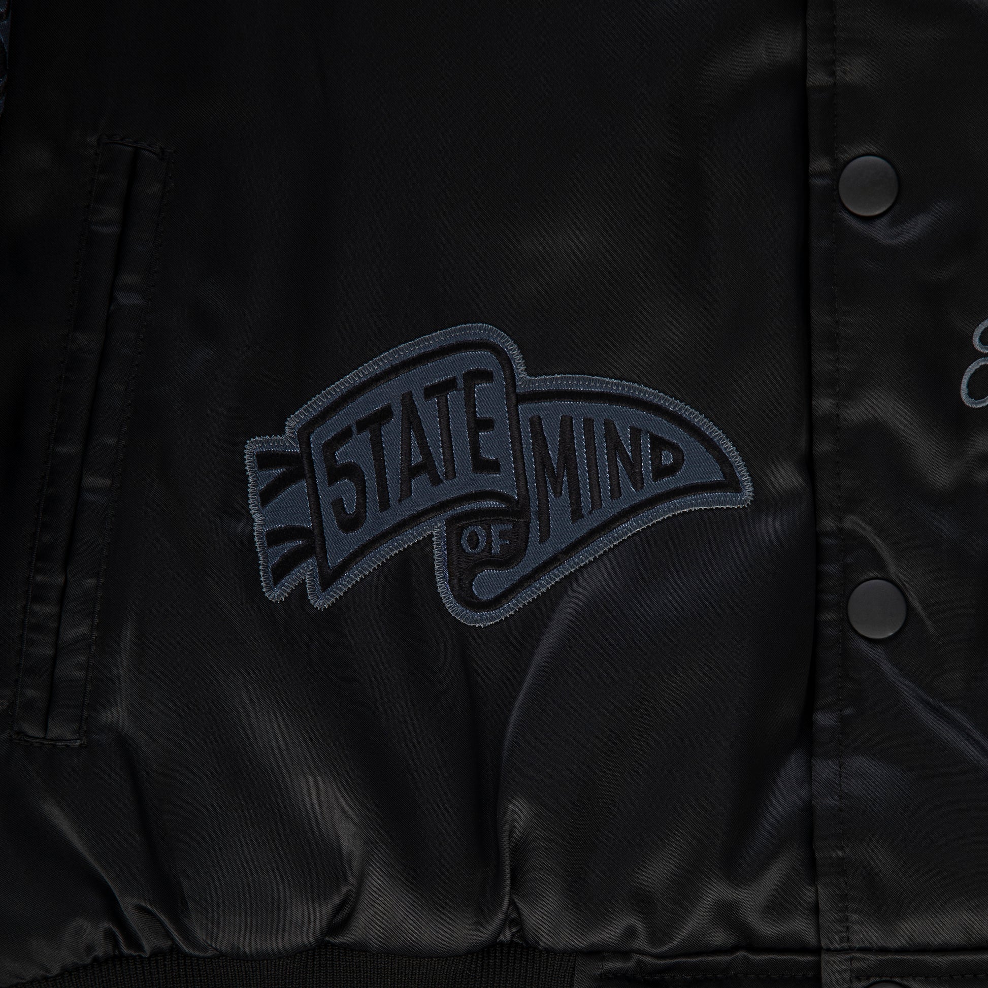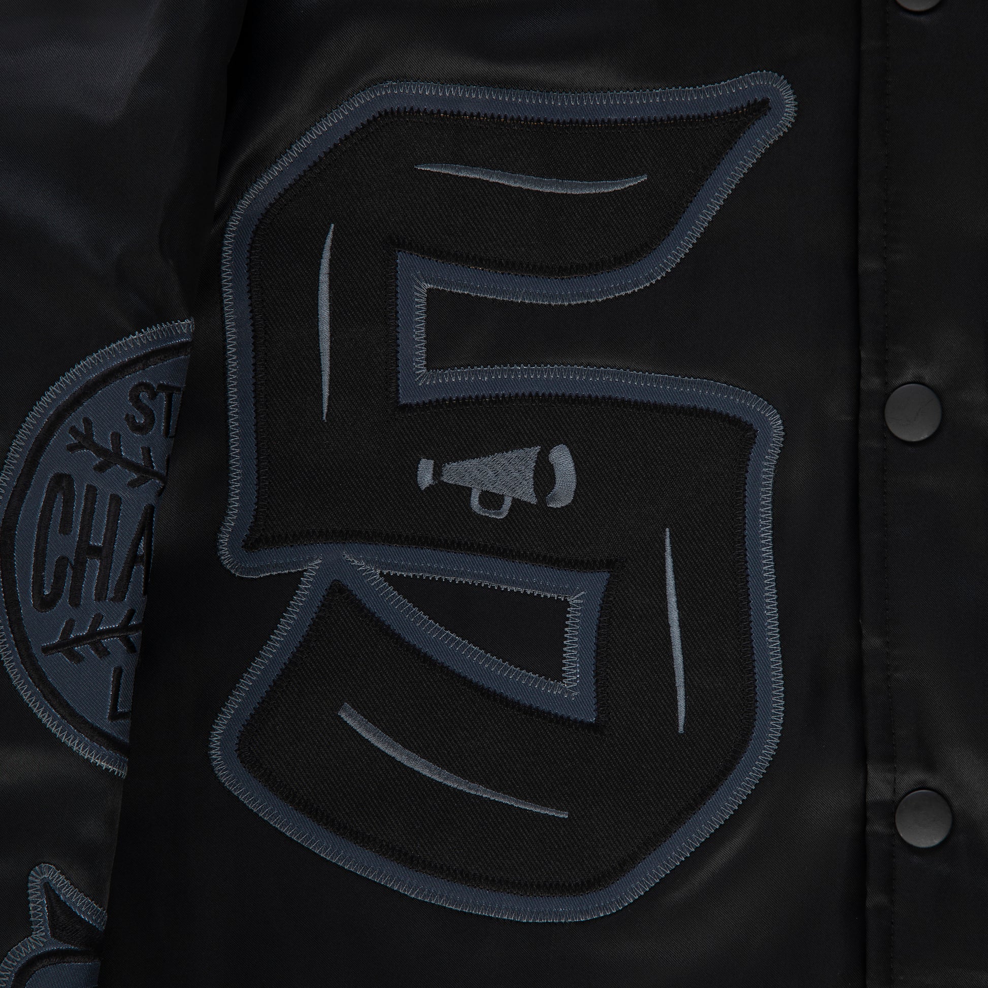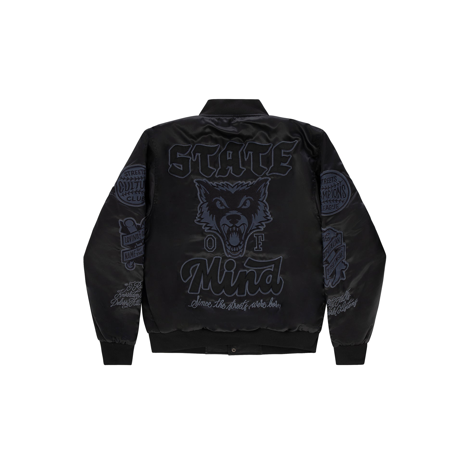 Giacca bomber, nylon satin, ricami e patches twill / ricamo, 2 tasche laterali, 2 tasche interne, chiusura snap buttons, vestibilità regolare.