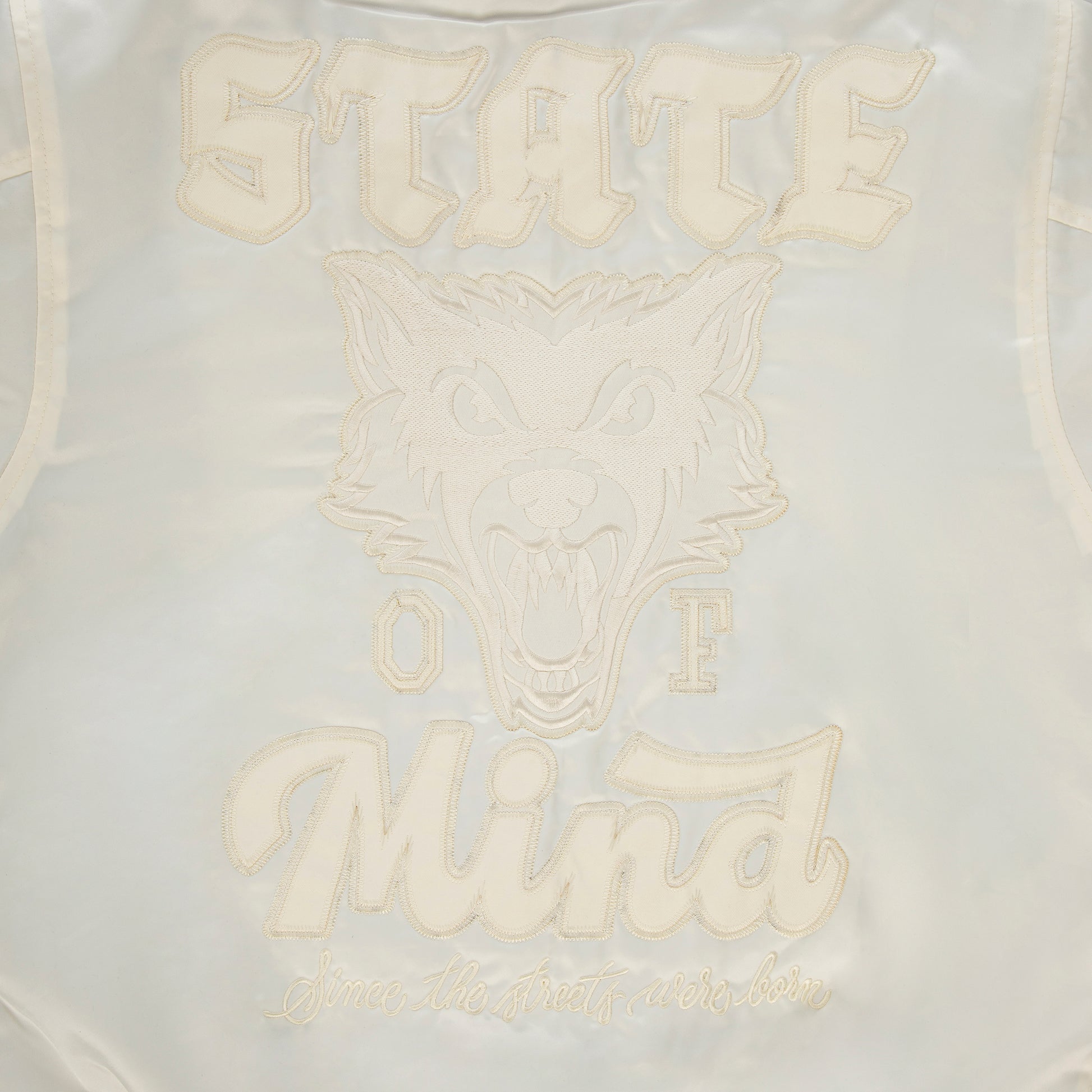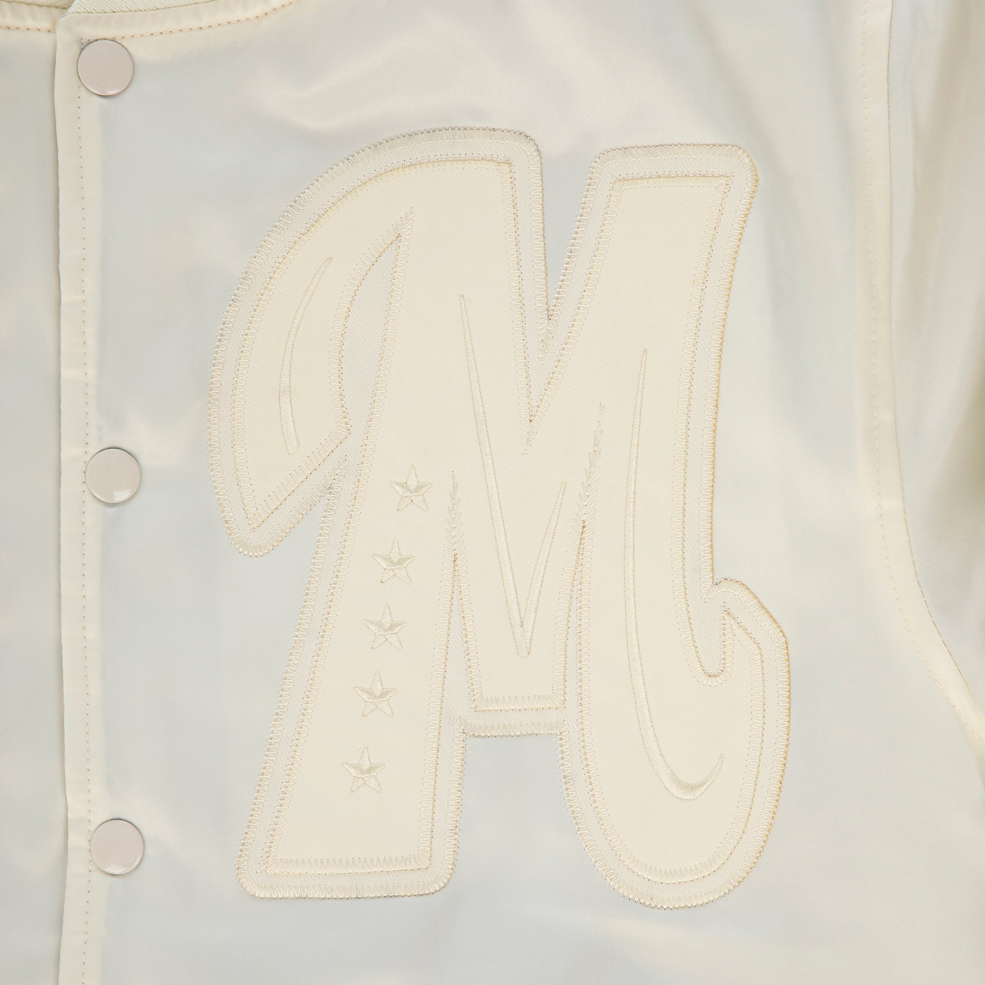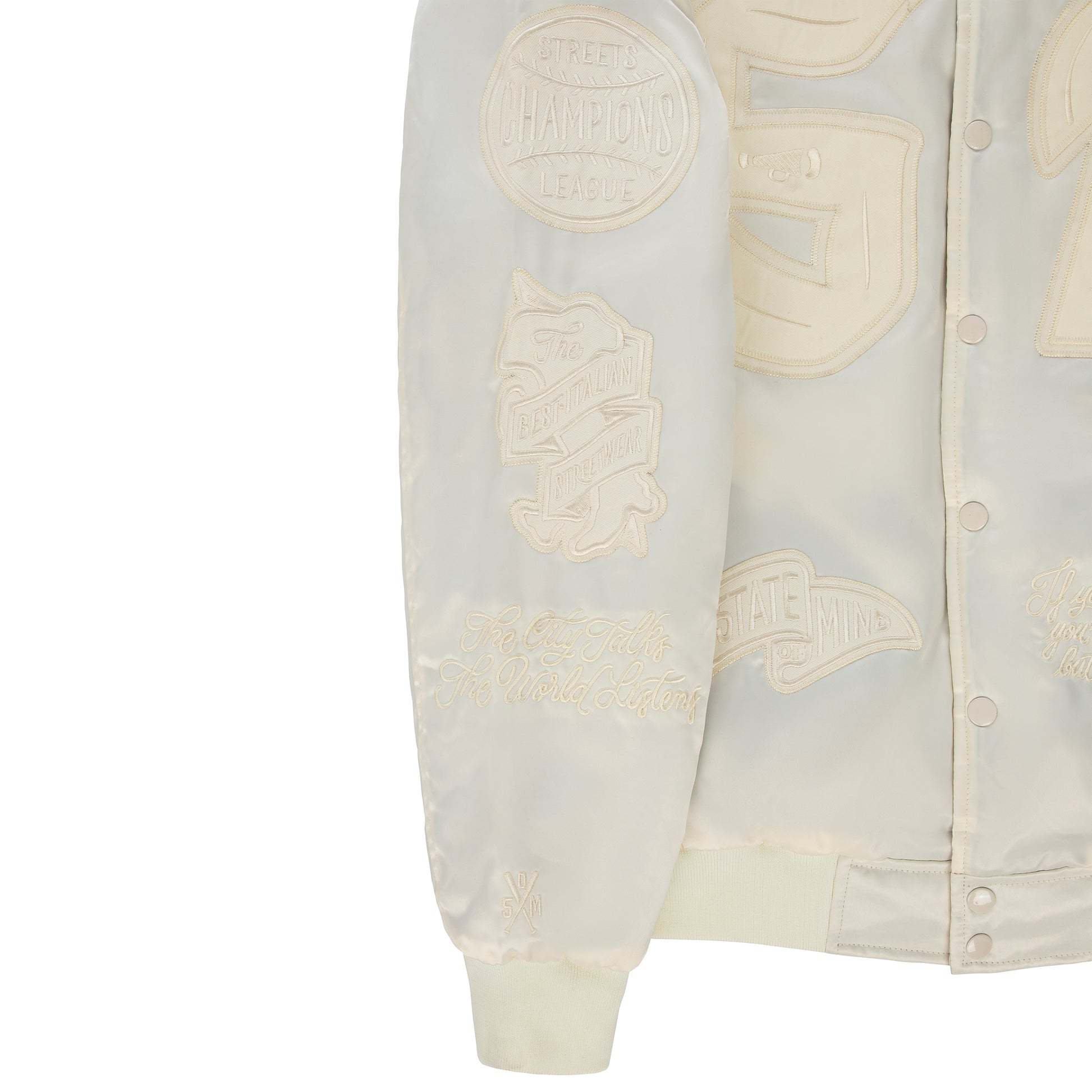 Giacca bomber, nylon satin, ricami e patches twill / ricamo, 2 tasche laterali, 2 tasche interne, chiusura snap buttons, vestibilità regolare.