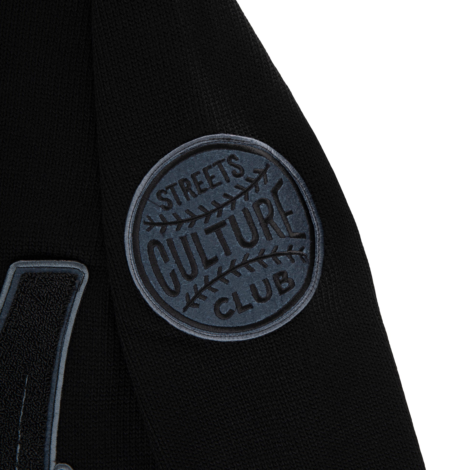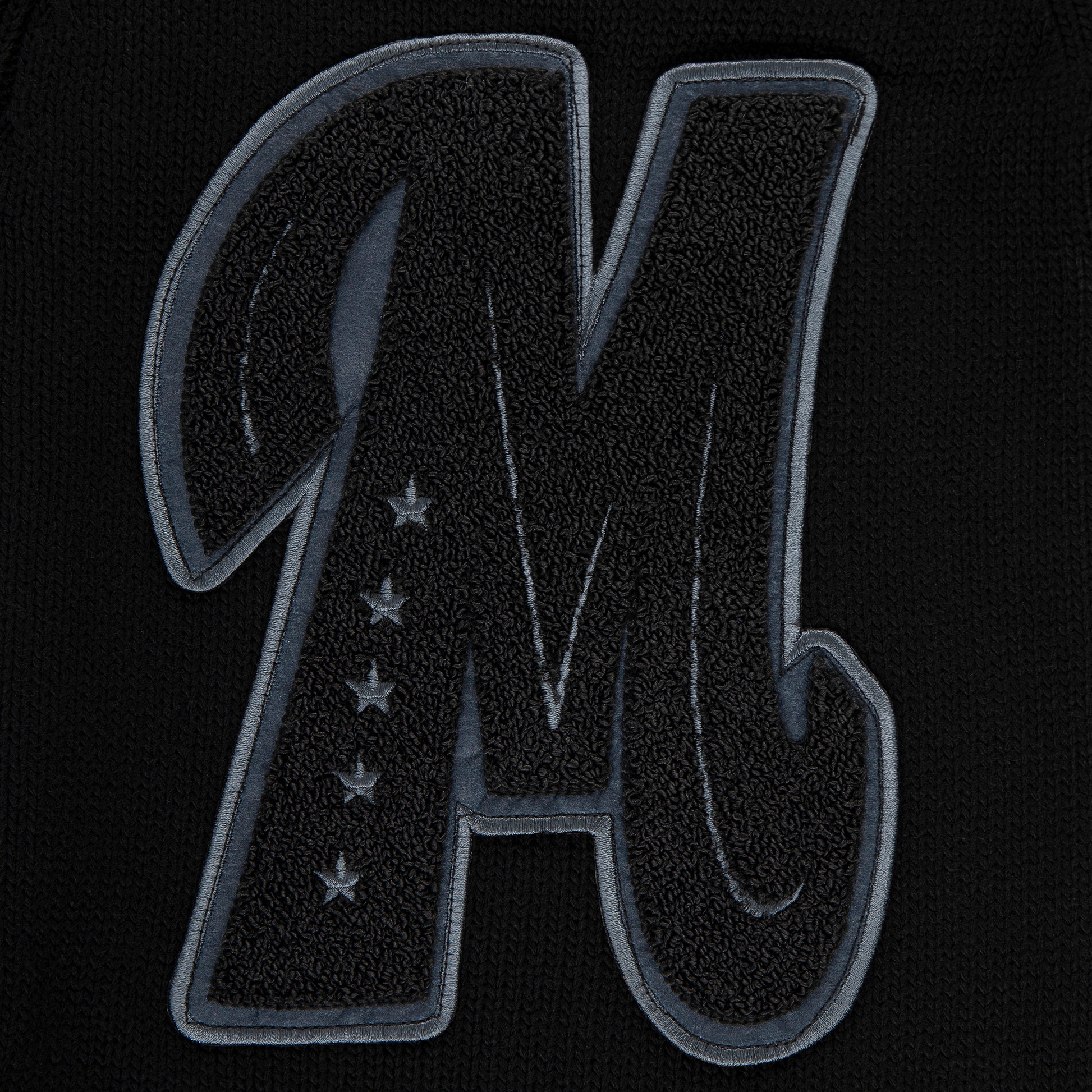 "WOLF" Maglione Cardigan nero, acrilico, patches feltro/ punto spugna/ricamo, vestibilitĂ REGOLARE.