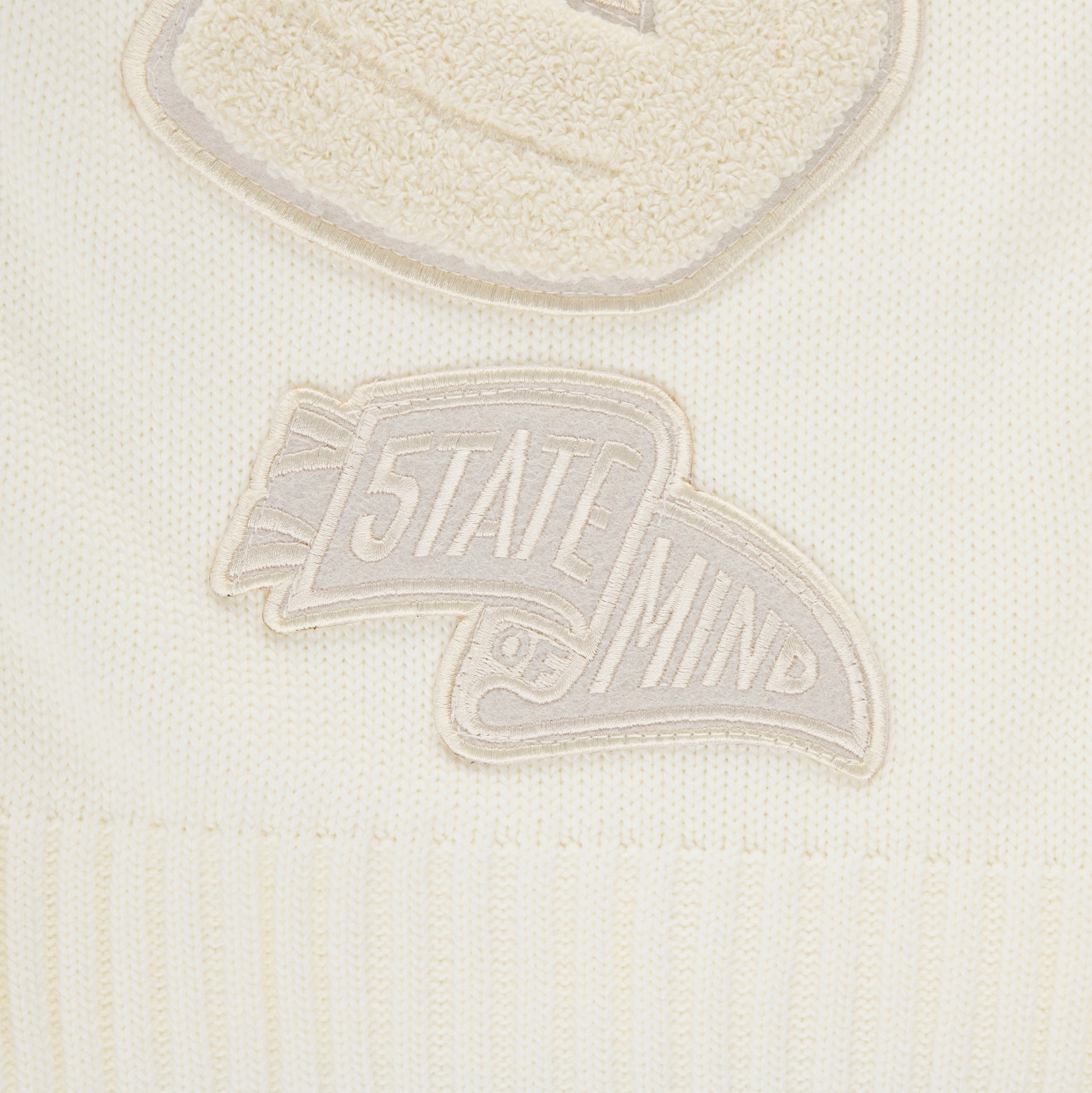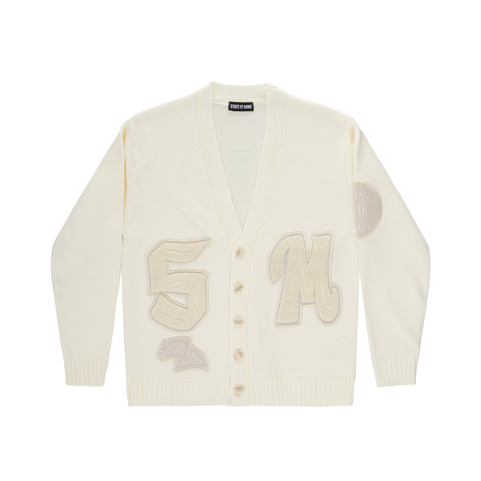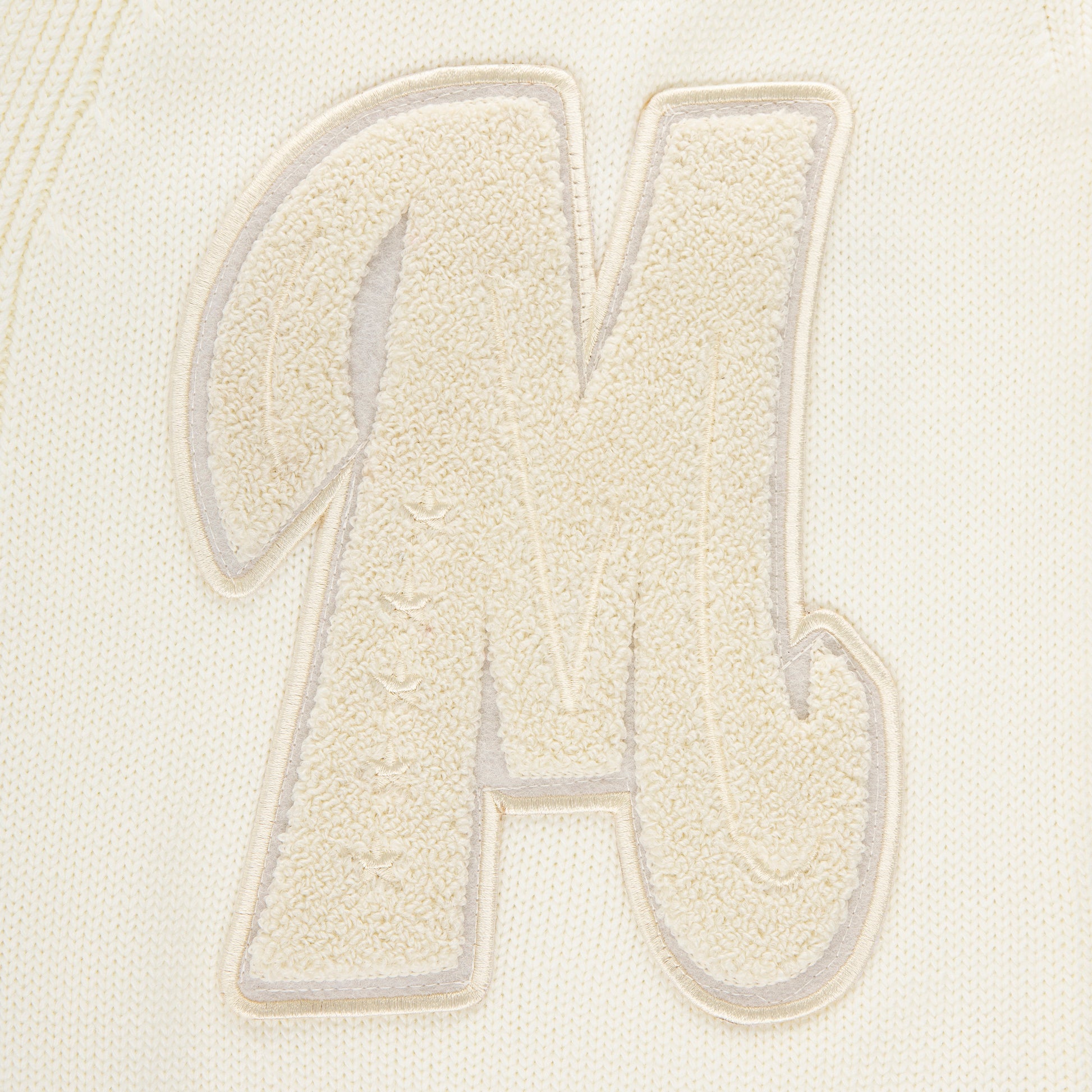 "WOLF" Maglione Cardigan bianco, acrilico, patches feltro/ punto spugna/ricamo, vestibilitĂ REGOLARE.