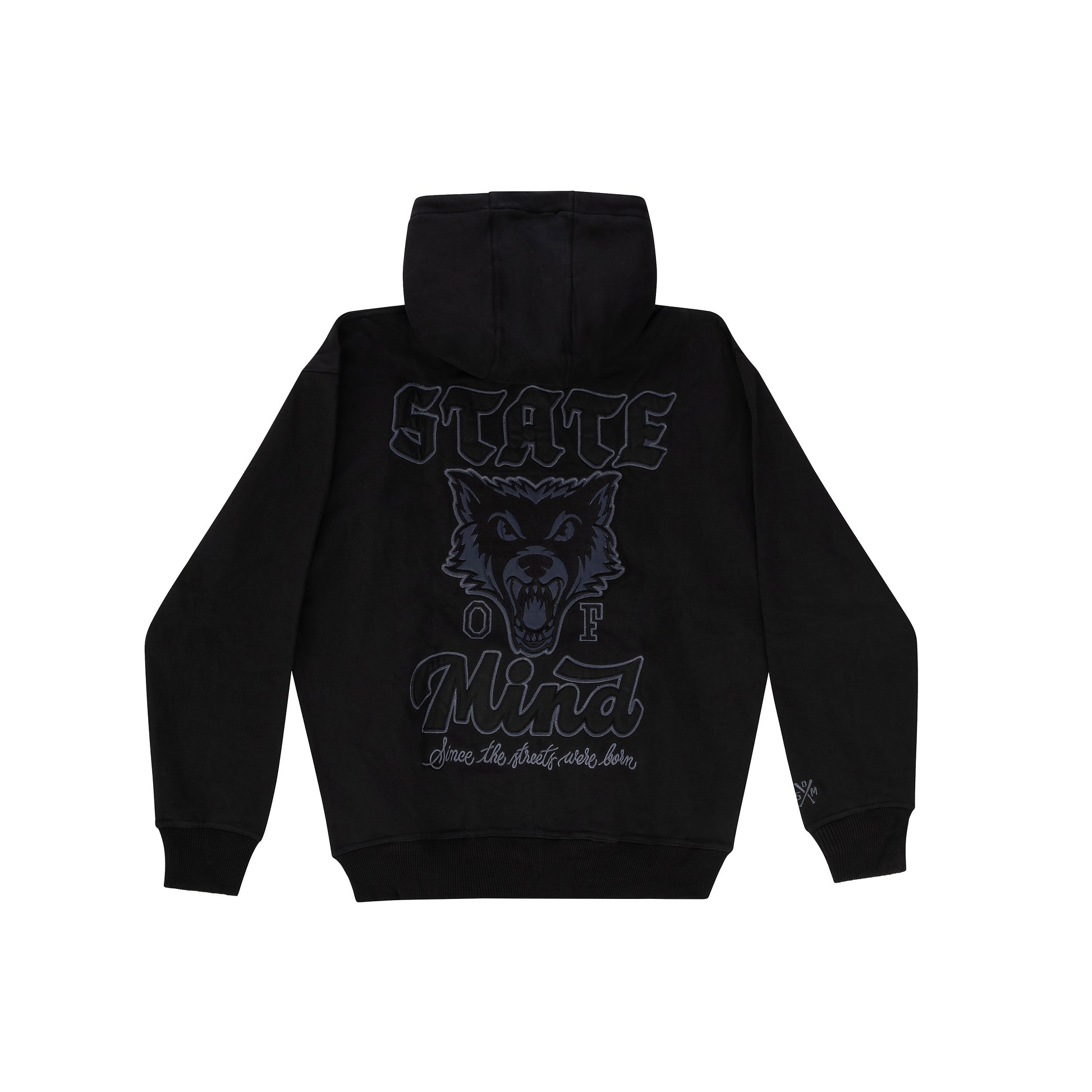 "LONE WOLVES" Felpa cappuccio zip, 100% cotone 380g, patches twill / ricamo, 2 tasche, vestibilità regolare.