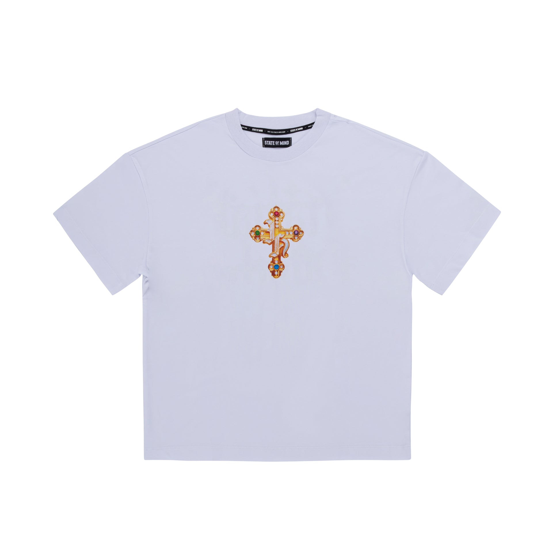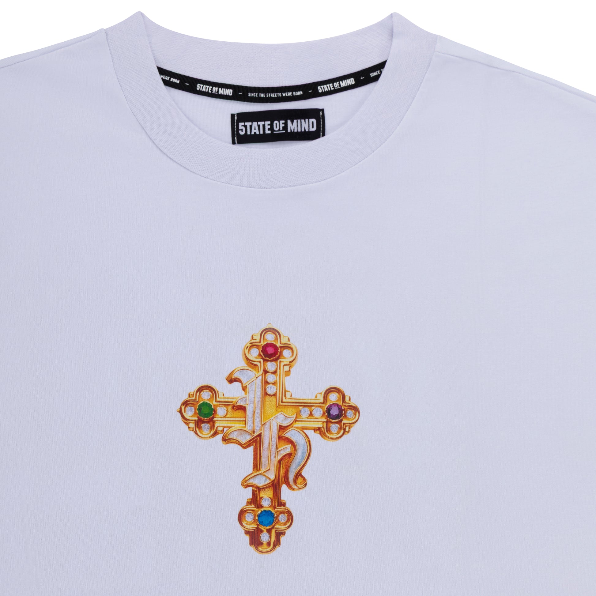 "HUSTLER BLING" by Guè T-shirt bianca, 100% cotone 220g, stampa digitale fronte/retro, vestibilità Loose.