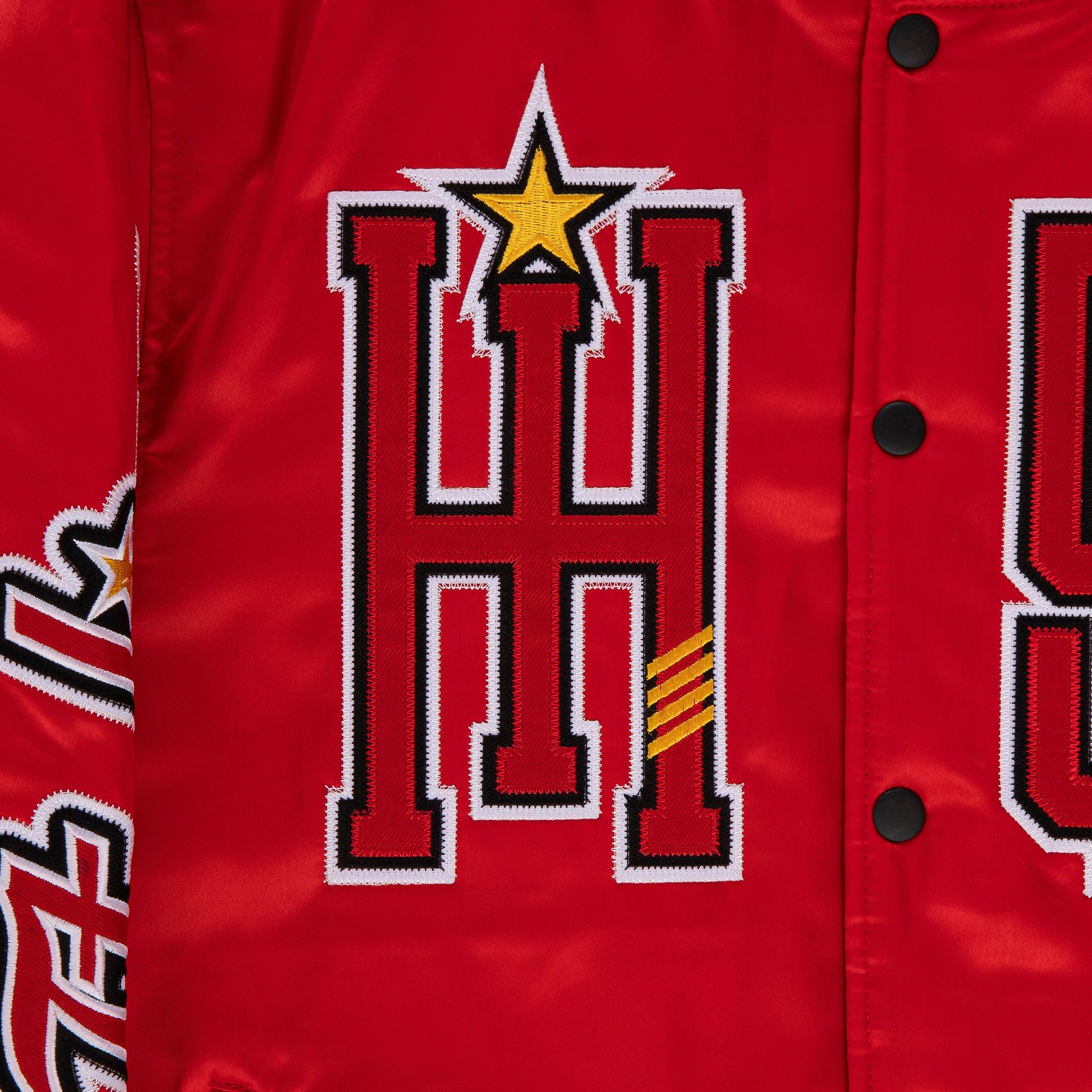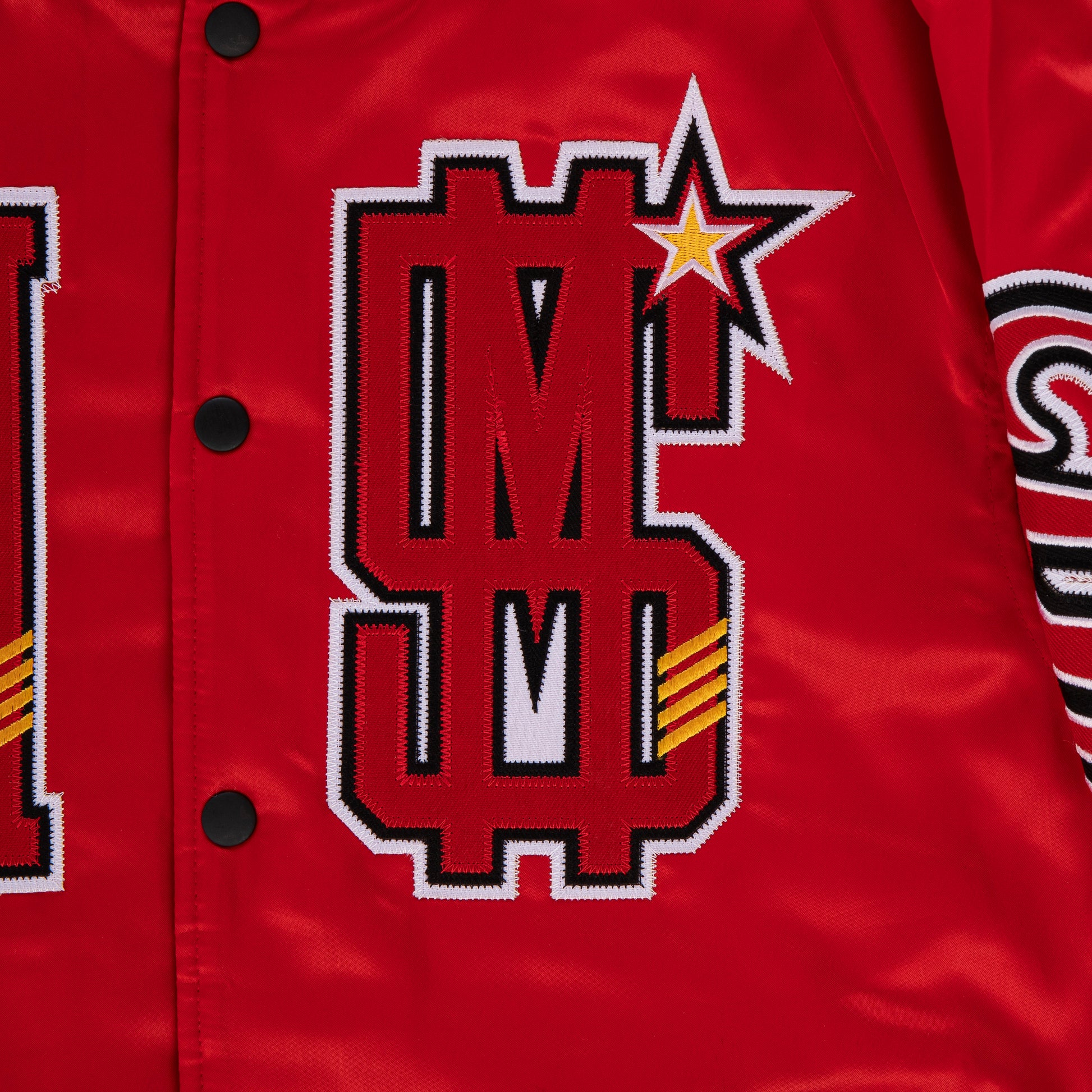 "ITALIAN HUSTLER" by Guè Giacca bomber, nylon satin, ricami e patches twill / ricamo, 2 tasche laterali, 2 tasche interne, chiusura snap buttons, vestibilità regolare.
