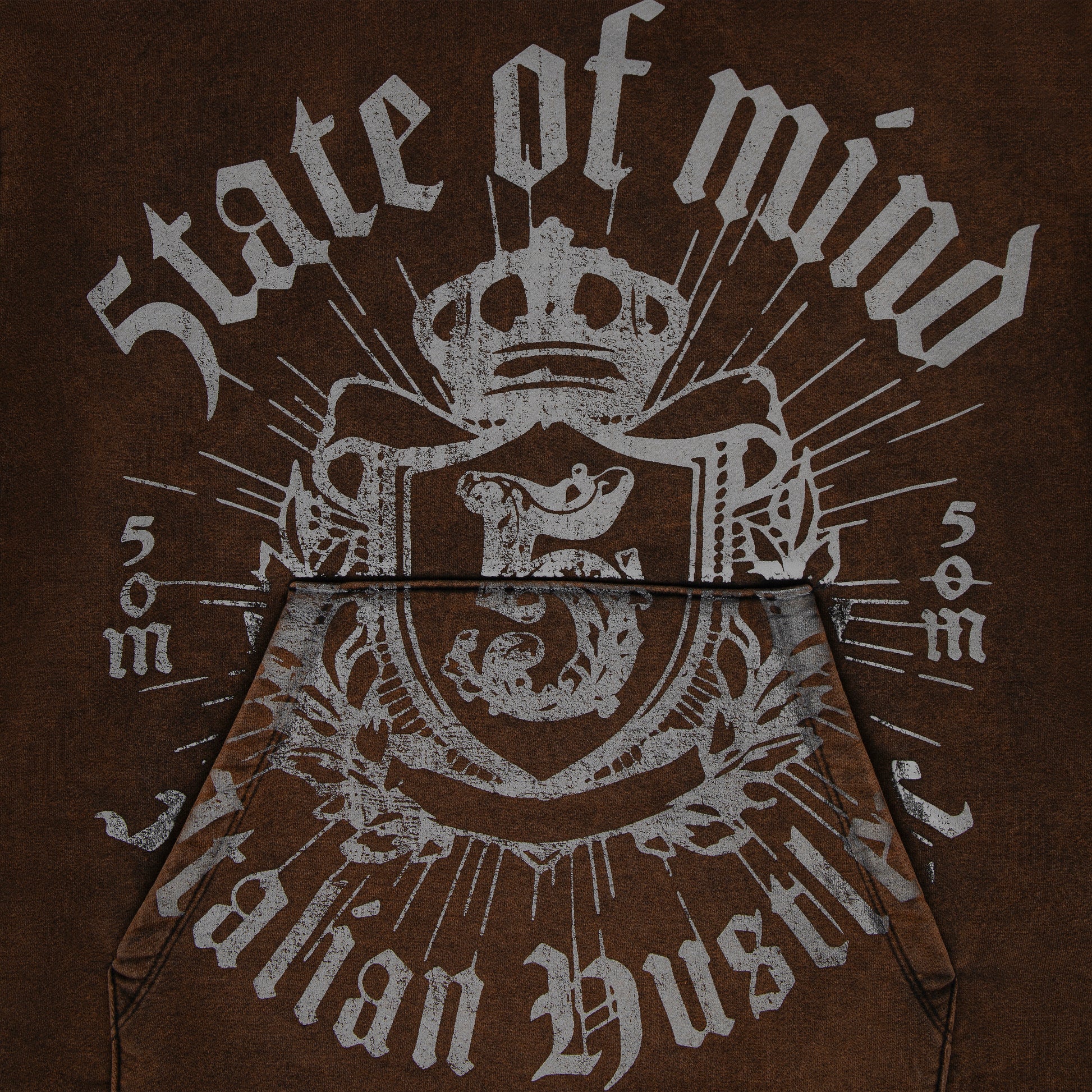 "ITALIAN HUSTLER" by Guè Hustler Kingdom Felpa cappuccio color ruggine, acid wash, 100% cotone 400g, stampa frontale, vestibilità REGOLARE. Ogni stampa è unica dovuta al lavaggio.