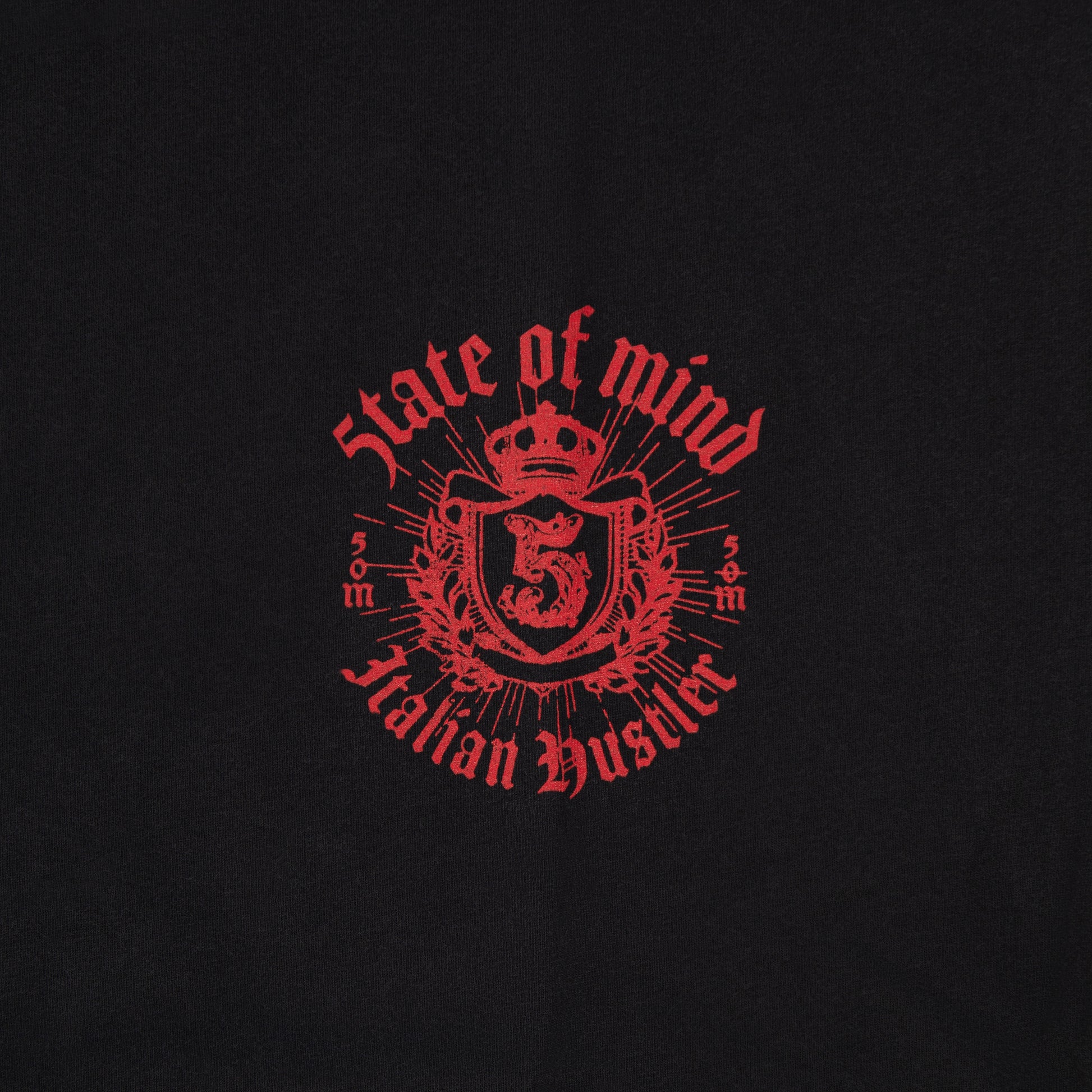 "ITALIAN HUSTLER" by Guè Hustler Kingdom T-shirt black, 100% cotone 220g, stampa fronte/retro, vestibilità Loose.