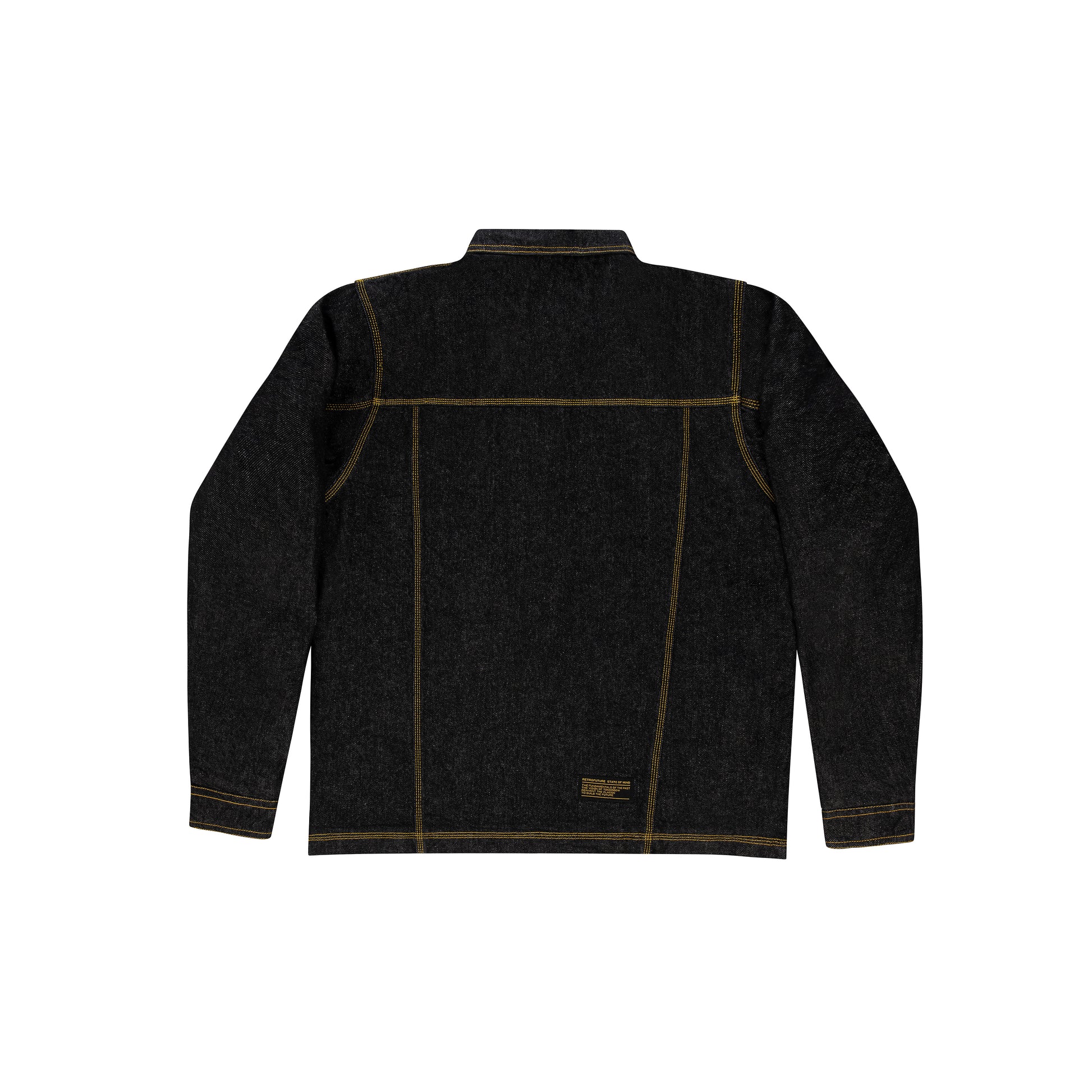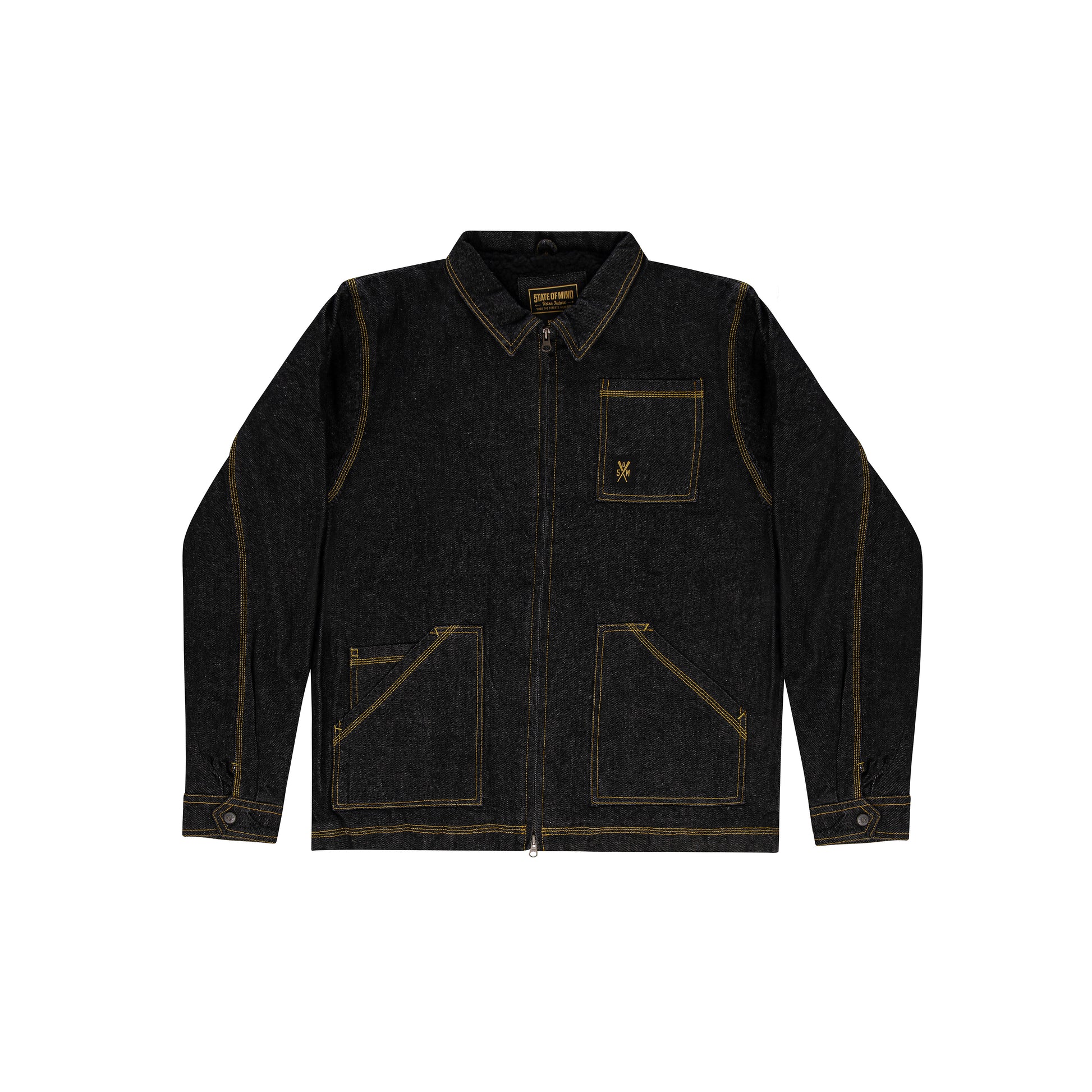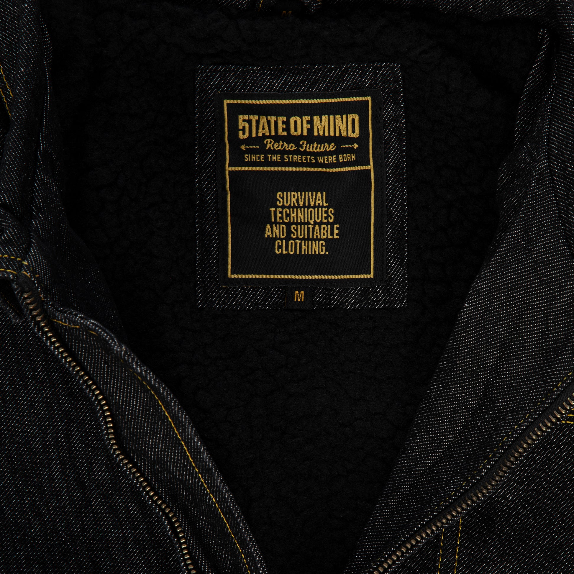 Giacca in denim 14oz 100% cotone, con interno in sherpa, chiusura a zip, quattro tasche frontali e tasca interna. Regular fit.